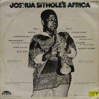 Our friends at Soul-Safari posted a superb Joshua S-penned late 60s Kwela Kids side a few weeks back (here), and today we share a rare full length LP, Joshua Sithole’s Africa, the back cover of which rather confusingly pictures him playing soprano. Needless to say, it is rather heavier fare than covers of 'Wonderful Tonight' and 'Groovy Kind of Love'.